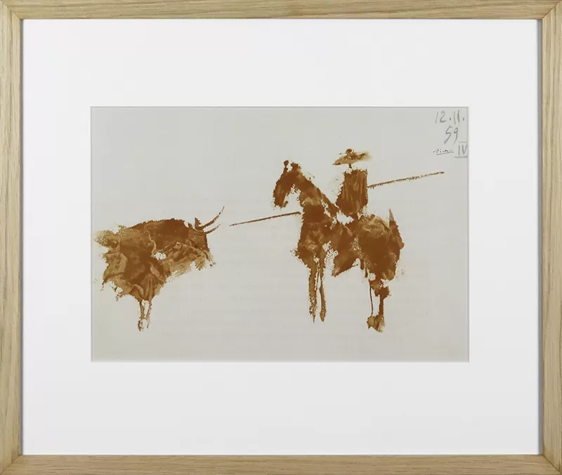 Nota: em 1961, Pablo Picasso publicou um livro de arte, repleto de ilustrações e gravuras, dedicado à arte da tauromaquia, intitulado “Los Toros”. Este trabalho é uma das lindíssimas ilustrações insertas neste “Los Toros”, um livro raro e valorizado no mercado internacional de arte.